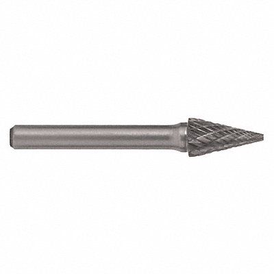 Cone Bur Double Cut Shank Dia 1/4 in Head Dia 3/8 in Length of Cut 5/8 in Overall Length 2-1/2 in Trade Number SM-4 Included Angle 28 Degrees Abrading Application Faster Penetration and Stock Removal Good Finish on Variety of Materials Coating Bright (Uncoated) End Type Pointed End