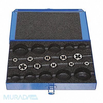 Tap and Die Set High Speed Steel Number of Pieces 10 Thread Sizes Included 1/2 In.-13 1/2 In.-20 1/4 In.-20 1/4 In.-28 3/8 In.-16 3/8 In.-24 5/16 In.-18 5/16 In.-24 7/16 In.-14 7/16 In.-20 Thread Standard UNC UNF Thread Direction Right Hand Tap Finish Bright (Uncoated) Case Type Metal Coolant Fed Non-Coolant Through