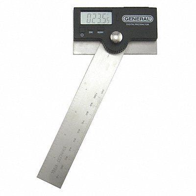 Digital Protractor Range 0 Degrees to 180 Degrees Digital Protractor Resolution 0.05 Degrees Accuracy +/-0.1 Degrees Blade Length 6 in Blade Style Stainless Steel with Knurled Locking Nut Operation Type Digital Battery Size CR2032 Blade Graduation 1/16 in 1 mm Display Type LCD Finish Matte Functions Absolute and Relative Measurements Can Invert Display Hold Function Includes Battery Includes Battery Yes Material Stainless Steel