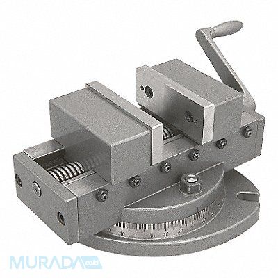 Machine Vise Self Centering Swivel Base Jaw Width (In.) 6 in Jaw Opening (In.) 6 in Throat Depth (In.) 1 3/4 in Overall Length (In.) 15.43 Overall Height (In.) 6.41 Clamping Force (Lb.) - Jaw Deflection 0.006 in per 4 in At 33 lb Load On Hand Crank Jaw Plate Square To 0.0012 in per 4 in Bed/Base Parallel To 0.0012 in 360 Degrees Swivel Base Both Jaws are Movable Allowing for Accurate Centering of Jobs Hold Down Slot for Secure Clamping
