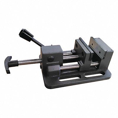 Machine Vise Quick Release Fixed Base Jaw Width (In.) 3 in Jaw Opening (In.) 3 in Throat Depth (In.) 1 in Overall Length (In.) 9-3/4 in Overall Height (In.) 2.75 Clamping Force (Lb.) 200 to 800 Jaw Plate Parallel to 0.001 in with Recessed Steps for accurate positioning of small work pieces. Adjustable Screw Provides Variable Clamping Force