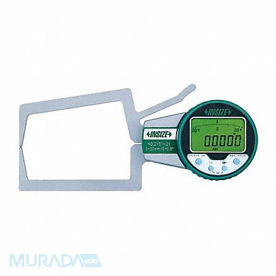 External Digital Caliper Gauge Range 0 in to 0.8 in 0 to 20 mm Resolution 0.0002 in/0.005mm Accuracy +/-0.0012 in Dimension Type Inch/Metric Jaw Actuation Type Lever Jaw Depth 3.150 in Maximum Measurement - Inch 0.8 in Maximum Measurement - mm 20 mm Measurements Outside Minimum Measurement - Inch 0 in Minimum Measurement - mm 0 mm Operation Type Digital Battery Size CR2032 Display Type 320 Degree Rotating Display with Digit and Analog Reading
