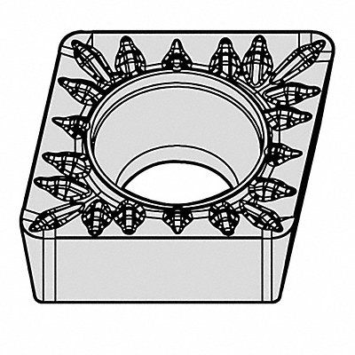Diamond Turning Insert Chip-Breaker Code MP Inscribed Circle 1/4 in Bright (Uncoated) ANSI Code CCMT2151MP Chip-Breaker Style On One Side Clearance Angle 7 Degrees