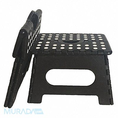 Step Stool Product Group Folding Step Number of Steps 1 Overall Height 8 3/4 in Material Plastic ANSI Type A14.5 Load Capacity 700 lb Top Step Height 8 3/4 in Top Step Depth 8 1/2 in Bottom Width 13 3/4 in Base Depth 10 3/4 in Color Black/White Finish Unfinished Closed Depth 2 in Closed Height 14 in Manufacturers Warranty Length 1 yr Ladder Actuation None Step Tread Antislip Vinyl Net Weight 3.13 lb Step Width 12 in Nestable No