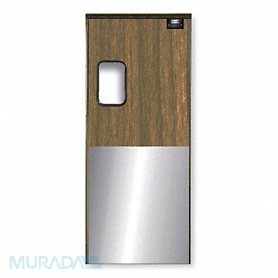 Swinging Door Door Height 7 ft Door Width 3 ft Door Color Light Wood Swinging Door Material Aluminum/Laminate Number of Doors 1 Window Height 14 in Window Width 9 in Bumpers Included No Opening Height 7 ft Opening Width 3 ft Window Color Clear Window Material Polycarbonate Right Jamb Window Included Yes