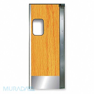 Swinging Door Door Height 7 ft Door Width 3 ft Door Color Light Wood Swinging Door Material Aluminum/Laminate Number of Doors 1 Window Height 14 in Window Width 9 in Bumpers Included No Opening Height 7 ft Opening Width 3 ft Window Color Clear Window Material Polycarbonate Right Jamb Window Included Yes