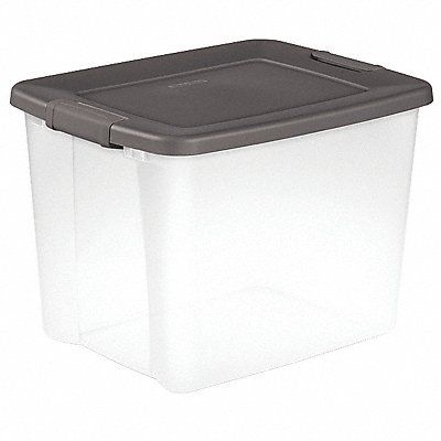 Storage Tote Includes Lid Yes Material Plastic Body Color Clear Lid Color Gray Overall Height 14 3/4 in Overall Length 19 7/8 in Overall Width 15 1/2 in Stackable Yes Volume Capacity 12.5 gal Bottom Inside Length 14 7/8 in Bottom Inside Width 12 1/2 in Includes Lid
