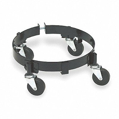 Adjustable Open-Deck Drum Dolly with Support Ring Load Capacity 50 lb For Cntnr Cap 5 gal Deck Height 3 1/4 in Deck Shape Round Deck Type Open For Container Material Plastic Steel For Maximum Container Diameter 12 in Adjustment Type Band Clamp Bolt Frame Material Steel Frame Gauge 13 ga Rim Catch Type Fixed Securing Mechanism No Securing Mechanism Frame Finish Powder Coated Caster Wheel Dia 2 1/2 in Caster Wheel/Tread Material Rubber