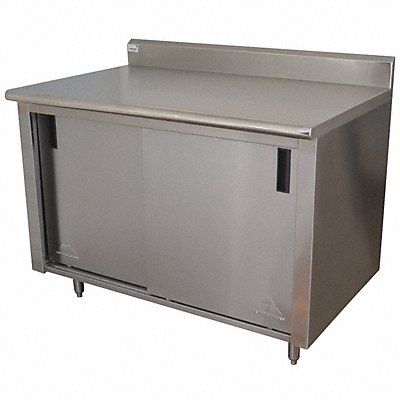 Cabinet Workbench Top Material Stainless Steel Color Silver Non-Metal Top Thickness Not Applicable Number of Doors 2 Number of Drawers 0 Number of Shelves 1 Overall Depth 30 in Overall Height 35 1/2 in Overall Load Capacity 562 lb Overall Width 60 in Top Metal Material Gauge 14 ga Included Components Backsplash Lower Shelf Assembly Fully Assembled Brake Type None Cabinet Interior Depth 24 in Caster Mount Type Not Applicable Caster Type Not Applicable Door Type Sliding