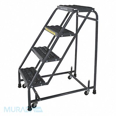 Rolling Ladder Material Steel Platform Height 38 in Handrails Included No Overall Height 38 in Number of Steps 4 Unassembled Load Capacity 450 lb Step Tread Serrated Platform Depth 10 in Platform Width 16 in Bottom Width 20 in Base Depth 31 in Overall Width 20 in Climbing Angle 59 Degrees Step Depth 7 in Step Width 16 in Ladder Actuation None Finish Powder Coated Color Gray Standards ANSI OSHA Includes Handrail Brackets Hardware Ladder Instructions Ladder Parts