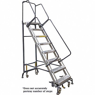 Rolling Ladder Material Aluminum Steel Platform Height 110 in Handrails Included Yes Overall Height 143 in Number of Steps 11 Unassembled Step Tread Perforated Platform Depth 14 in Platform Width 24 in Bottom Width 34 in Base Depth 32 in Step Width 24 in Color Gray Includes Handrails Manufacturers Warranty Length 1 yr Rear Exit Yes