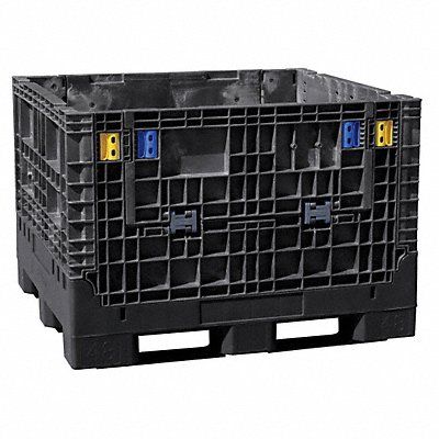 Collapsible Bulk Container Color Black Container Wall Type Solid Folded Depth 48 in Folded Height 12 7/8 in Folded Width 45 in Fork Entry 4-Way Entry Fork Pockets Yes Maximum Operating Temperature 120 Degrees F Minimum Operating Temperature -20 Degrees F Mobility Stationary Number of Drop Doors 2 Overall Height 34 in Overall Length 48 in Overall Width 45 in Stackable Yes Volume Capacity 28.7 cu ft Weight Capacity 2 500 lb Collapsible Yes Includes Lid No