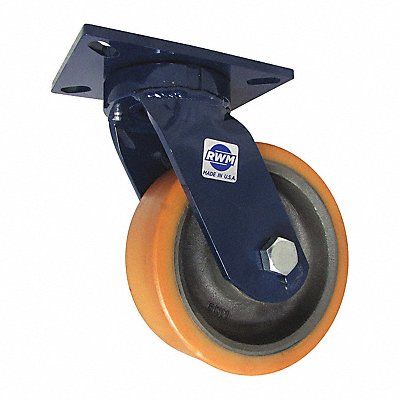 Swivel Kingpinless Plate Caster Load Rating 4000 lb Swivel Lock Type No Lock Included Wheel Dia 8 in Wheel Width 3 in Wheel/Tread Material Polyurethane Wheel Core Material Cast Iron Non-Marking Yes Number of Wheels 1 Caster Brake Type Face Contact Brake Tread Shape Standard