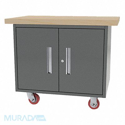Mobile Cabinet Workbench Top Material Butcher Block Color Gray Non-Metal Top Thickness 1 3/4 in Number of Doors 2 Number of Drawers 0 Number of Shelves 2 Overall Depth 24 in Overall Height 34 in Overall Load Capacity 2 500 lb Overall Width 38 in Top Metal Material Gauge Not Applicable Included Components Lower Shelf Assembly Fully Assembled Brake Type Wheel Brake Cabinet Interior Depth 22 in Caster Mount Type Plate Caster Type (2) Rigid (2) Swivel with Brakes