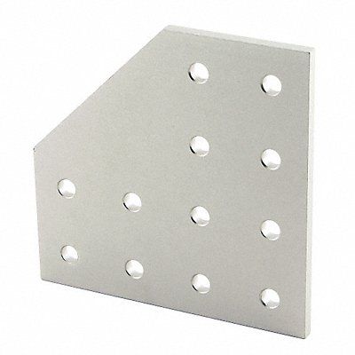 90 Degrees Angled Flat Plate Silver Anodized Number of Mounting Holes 12 Overall Height 4 in 1/4 in Overall Length 3/16 in Overall Width 4 in Aluminum 6105-T5 Inside Corner Bracket Style 90 Degrees Angle 10 Series System of Measurement Inch Joining Plate Joining Plate Style 90 Degrees Angled For Slot Width 17/64 in
