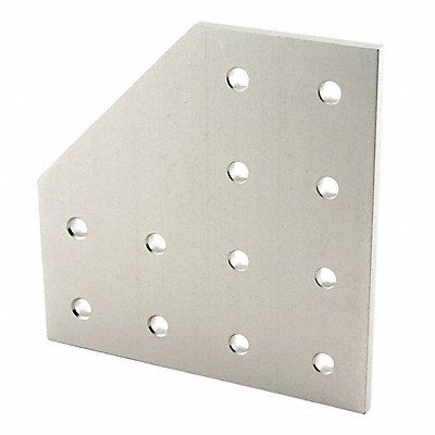 90 Degrees Angled Flat Plate Silver Anodized Number of Mounting Holes 12 Overall Height 6 in 21/64 in Overall Length 1/4 in Overall Width 6 in Aluminum 6105-T5 Inside Corner Bracket Style 90 Degrees Angle 15 Series System of Measurement Inch Joining Plate Joining Plate Style 90 Degrees Angled For Slot Width 21/64 in