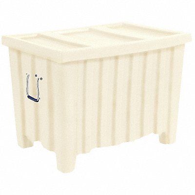 Bulk Container Color White Fork Entry 2-Way Entry Fork Pockets Yes Mobility Stationary Overall Height 26 1/2 in Overall Length 41 in Overall Width 28 in Stackable Yes Volume Capacity 14 cu ft Weight Capacity 400 lb Includes Lid Yes Bottom Inside Length 36 in Bottom Inside Width 23 1/2 in Caster Type Not Applicable Caster Wheel Diameter Not Applicable Finish Unfinished Handle Style Rope Inside Height 24 1/2 in Lid Type Hinged