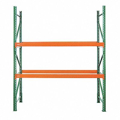 Pallet Rack Starter Unit Beam Height 4 3/8 in Beam Step Depth 3/4 in Beam Step Height 1 1/2 in Step Beam Beam Style 16 ga Footplate Depth 4 in Footplate Width 4 1/4 in Overall Depth 48 in Overall Height 8 ft Overall Width 126 in Load Capacity per Shelf 4 190 lb Starter Pallet Rack Configuration 14 ga Upright Load Capacity @ 36 in 21 450 lb No Number of Levels 2 Whole Unit Load Capacity 8 124 lb Usable Width 10 ft RMI Green/Orange Teardrop Connection Type Polyurethane