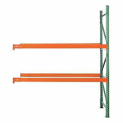 Pallet Rack Add-On Unit Beam Height 4 3/8 in Beam Step Depth 3/4 in Beam Step Height 1 1/2 in Step Beam Beam Style 16 ga Footplate Depth 4 in Footplate Width 4 1/4 in Overall Depth 36 in Overall Height 10 ft Overall Width 111 in Load Capacity per Shelf 5 060 lb Add-On Pallet Rack Configuration 14 ga Upright Load Capacity @ 36 in 21 450 lb No Number of Levels 2 Whole Unit Load Capacity 10 000 lb Usable Width 9 ft RMI Green/Orange Teardrop Connection Type Polyurethane