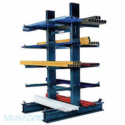 Cantilever Rack Overall Depth 64 1/4 in Overall Height 96 in Overall Width 55 3/8 in Load Capacity per Level 650 lb Whole Unit Load Capacity 7 500 lb Arm Gauge 10 ga Arm Length 24 in Arm Lip Height 1 1/2 in Removable Straight Number of Arms 16 Number of Usable Sides 2 Rack Configuration Starter Rack Depth 64 1/2 in Base Length 64 1/2 in Center Brace Length 45 in Column Gauge 11 ga Medium-Duty Enamel Arms Adjustable on 3 in Centers Steel