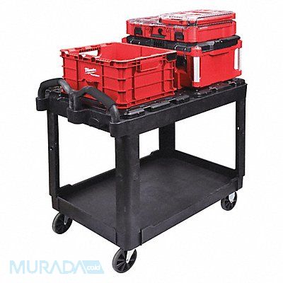 Utility Cart Number of Shelves 2 Lip Style Combination Load Capacity 500 lb Shelf Length 38 1/8 in Shelf Width 24 3/8 in Top Shelf Height 32 in Distance Between Shelves 20 in Handle Type Ergonomic Handle Height 5 35/64 in Caster Brake Type No Brake Included Caster Wheel/Tread Material Polypropylene Caster Wheel Dia 5 in Lip Height 2 23/64 in