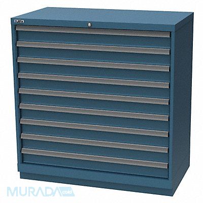 K3768 Modular Drawer Cabinet Base Type Frame Adjustable Dividers Yes Cabinet Color Classic Blue Cabinet Storage Components Drawers Drawer Height 3 in Includes Dividers Yes Number of Compartments per Drawer (2) 21 (2) 36 (5) 18 Number of Drawers 9 Overall Depth 22 1/2 in Overall Height 39 3/8 in Overall Width 56 3/8 in Method of Construction Welded Mobility Stationary Number of Compartments 153 Cabinet Finish Powder Coated Cabinet Material Steel Drawer Access Single