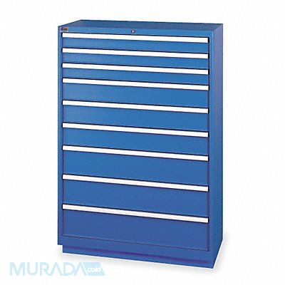 Modular Drawer Cabinet Base Type Frame Adjustable Dividers Yes Cabinet Color Bright Blue Cabinet Storage Components Drawers Drawer Height 3 in 5 in 7 in Includes Dividers Yes Number of Compartments per Drawer (2) 6 (3) 15 (4) 12 Number of Drawers 9 Overall Depth 22 1/2 in Overall Height 59 1/2 in Overall Width 40 1/4 in Mobility Stationary Number of Compartments 105 Cabinet Finish Powder Coated Cabinet Material Steel Drawer Access Single Drawer Depth 18 in