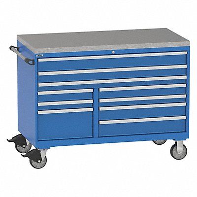 Modular Drawer Cabinet Base Type Casters Adjustable Dividers Yes Cabinet Color Bright Blue Cabinet Storage Components Drawers Drawer Height 2 in 3 in 4 in 5 in 10 in Includes Dividers No Number of Drawers 10 Overall Depth 28 1/2 in Overall Height 42 in Overall Width 60 in Lock Type Keyed Mobility Mobile Cabinet Finish Powder Coated Cabinet Material Steel Caster Type (2) Rigid (4) Swivel Caster Wheel Diameter 6 in Caster Wheel/Tread Material Polyurethane