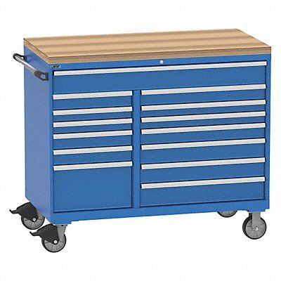 Modular Drawer Cabinet Base Type Casters Adjustable Dividers Yes Cabinet Color Bright Blue Cabinet Storage Components Drawers Drawer Height 2 in 3 in 4 in 5 in 11 in Includes Dividers No Number of Drawers 14 Overall Depth 28 1/2 in Overall Height 48 in Overall Width 60 in Lock Type Keyed Mobility Mobile Cabinet Finish Powder Coated Cabinet Material Steel Caster Type (2) Rigid (4) Swivel Caster Wheel Diameter 6 in Caster Wheel/Tread Material Polyurethane