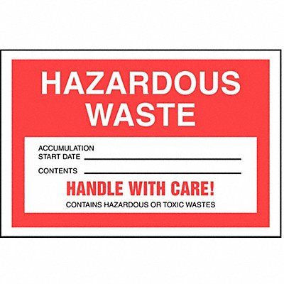 DOT Handling Label Language English Handling Label/Placard Type Waste DOT/UN Product Form Label Message Handle With Care! Contains Hazardous or Toxic Wastes Label Width 6 in Label Height 4 in Material Vinyl Labels per Roll 100 Background Color White Package Quantity 100