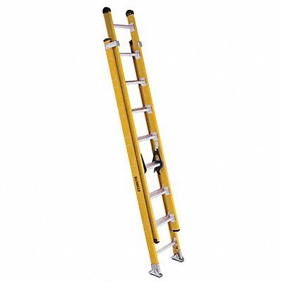 Extension Ladder Material Fiberglass Industry Ladder Size 16 ft Extended Ladder Height 13 ft ANSI Type IAA Load Capacity 375 lb Adjustable Increments 12 in Bottom Width 17 3/8 in DXL3420 Series Rail Type Non Conductive Shoe Design Aluminum/Rubber Includes Professional Non-marring end caps. All The Necessary Warning Caution Danger and Instruction Labels Model/Duty Rating Label Rung Shape D-Rung Closed Height 8 ft Section Length 8 ft Net Weight 42.5 lb Rung/Step Spacing 12 in