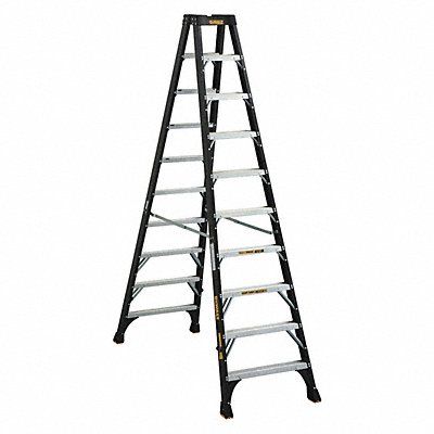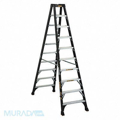 Twin Stepladder Material Fiberglass ANSI Type IA Ladder Height 10 ft Load Capacity 300 lb Number of Steps 9 Base Spread 85 in Bottom Width 30 in Step Depth 3 3/4 in Step Tread Ribbed Series DXL3030 Rung/Step Spacing 12 in