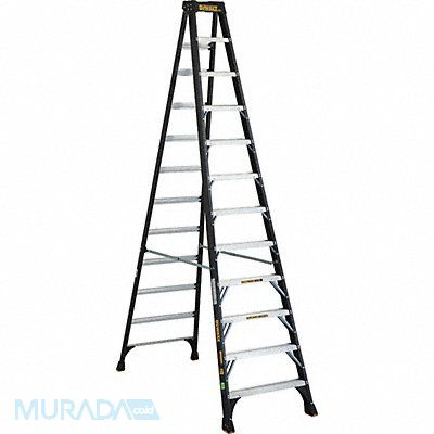 Stepladder Material Fiberglass ANSI Type IA Ladder Height 12 ft Load Capacity 300 lb Number of Steps 11 Base Spread 77 in Bottom Width 32 3/4 in Step Depth 3 in Step Tread Ribbed Series DXL3010 Includes Impact Bracing Mega Step ProTop(TM) with Magnet Slip Resistant Boot Rung/Step Spacing 12 in