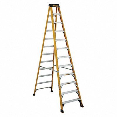 Stepladder Material Fiberglass ANSI Type IAA Ladder Height 12 ft Load Capacity 375 lb Number of Steps 11 Base Spread 76 15/16 in Bottom Width 32 3/4 in Step Depth 3 in Step Tread Ribbed Series DXL3410 Includes Impact Bracing Mega Step ProTop(TM) with Magnet Slip Resistant Boot Rung/Step Spacing 12 in