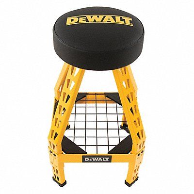DEWALT(R) Padded Swivel Shop Stool Base Design 4-Post Square Mobility Stationary Backrest No Base Color Yellow Built-In Tool Tray Yes Includes Footring No Maximum Seat Height 30 in Minimum Seat Height 30 in Overall Height 30 in Seat Adjustment Type None Seat Diameter 14 in Seat Shape Round Seat Width 14 in ESD Conductive Yes Assembled Assembled Load Capacity 300 lb Puncture Resistant Yes