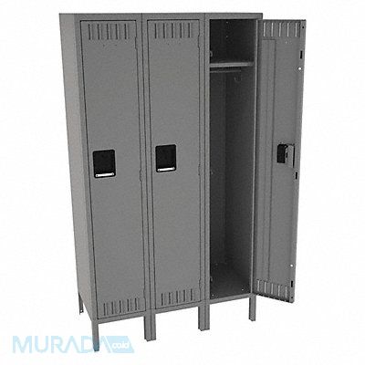 K4142 Wardrobe Locker Audit Trail Storage None Frame Assembled Assembled Number of Tiers 1 Number of Units Wide 3 Door Type Louvered Frame Material Thickness 16 ga Includes Number Plates Yes Locker Color Medium Gray Lock Type Padlock Hasp Overall Depth 18 in Overall Height 66 in Overall Width 36 in Handle Type Recessed Lift Locker Finish Powder Coated Locker Material Steel Number of Lockers 3 Opening Depth 16 7/8 in Opening Height 57 7/8 in Opening Width 9 5/8 in