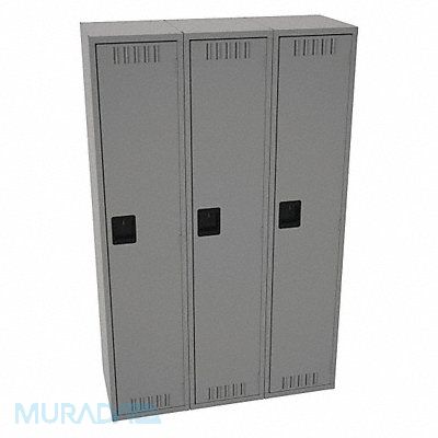 Wardrobe Locker Audit Trail Storage None Frame Assembled Assembled Number of Tiers 1 Number of Units Wide 3 Door Type Louvered Frame Material Thickness 16 ga Includes Number Plates Yes Locker Color Medium Gray Lock Type Padlock Hasp Overall Depth 18 in Overall Height 72 in Overall Width 15 in Handle Type Recessed Lift Locker Finish Powder Coated Locker Material Steel Number of Lockers 3 Opening Depth 16 7/8 in Opening Height 69 7/8 in Opening Width 12 5/8 in