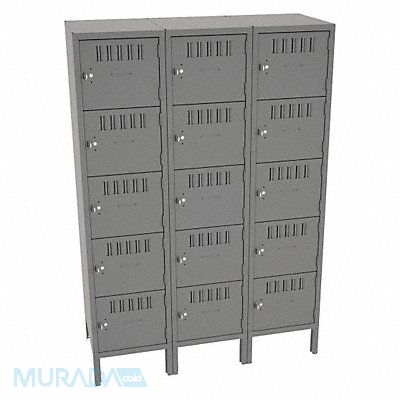 Box Locker Audit Trail Storage None Frame Assembled Assembled Number of Tiers 5 Number of Units Wide 3 Door Type Louvered Frame Material Thickness 16 ga Includes Number Plates Yes Locker Color Gray Lock Type Padlock Hasp Overall Depth 18 in Overall Height 66 in Overall Width 45 in Handle Type Pull Includes ID Plate Locker Material Steel Number of Lockers 15 Opening Depth 16 7/8 in Opening Height 10 5/8 in Opening Width 12 5/8 in