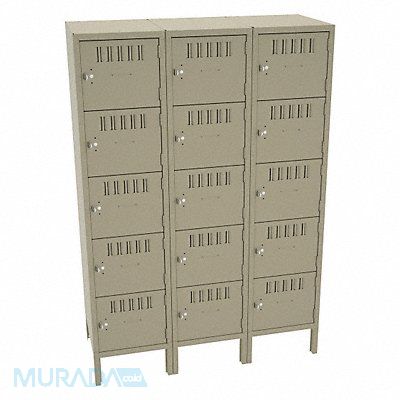 Box Locker Audit Trail Storage None Frame Assembled Assembled Number of Tiers 5 Number of Units Wide 3 Door Type Louvered Frame Material Thickness 16 ga Includes Number Plates Yes Locker Color Tan Lock Type Padlock Hasp Overall Depth 18 in Overall Height 66 in Overall Width 45 in Handle Type Pull Includes ID Plate Locker Material Steel Number of Lockers 15 Opening Depth 16 7/8 in Opening Height 10 5/8 in Opening Width 12 5/8 in