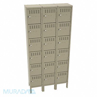 Box Locker Audit Trail Storage None Frame Assembled Assembled Number of Tiers 6 Number of Units Wide 3 Door Type Louvered Frame Material Thickness 16 ga Includes Number Plates Yes Locker Color Tan Lock Type Padlock Hasp Overall Depth 12 in Overall Height 78 in Overall Width 36 in Handle Type Pull Includes ID Plate Locker Material Steel Number of Lockers 18 Opening Depth 10 7/8 in Opening Height 10 5/8 in Opening Width 9 5/8 in