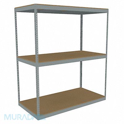 Boltless Shelving Angle Overall Depth 36 in Overall Height 84 in Overall Width 72 in Shelf Gauge 14 ga Shelf Adjustment Increments 1 1/2 in Steel Particleboard Steel (3) Deck Levels (4) Posts Includes Decking Yes 1 750 lb Whole Unit Load Capacity 5 250 lb Starter Open Post Gauge 14 ga Number of Shelves 3 Maximum Post Load Capacity 8 000 lb with Beams Evenly Spaced at 24 in Powder Coated Heavy-Duty Gray