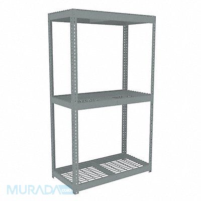 Boltless Shelving Channel Overall Depth 24 in Overall Height 84 in Overall Width 48 in Shelf Gauge 14 ga Shelf Adjustment Increments 1 1/2 in Steel Steel Steel (3) HD Deck Levels (4) Posts Includes Decking Yes 2 500 lb Whole Unit Load Capacity 7 500 lb Starter Open SCS Indoor Advantage(R) Certified Post Gauge 14 ga Number of Shelves 3 Maximum Post Load Capacity 13 000 lb with Beam Evenly Spaced at 24 in Powder Coated Heavy-Duty Gray