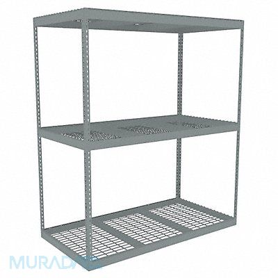 Boltless Shelving Angle Overall Depth 36 in Overall Height 84 in Overall Width 72 in Shelf Gauge 14 ga Shelf Adjustment Increments 1 1/2 in Steel Steel Steel (3) Deck Levels (4) Posts Includes Decking Yes 1 750 lb Whole Unit Load Capacity 5 250 lb Starter Open SCS Indoor Advantage(R) Certified Post Gauge 14 ga Number of Shelves 3 Maximum Post Load Capacity 8 000 lb with Beams Evenly Spaced at 24 in Powder Coated Heavy-Duty Gray