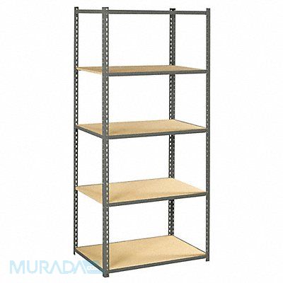 Boltless Shelving Low Profile Overall Depth 18 in Overall Height 84 in Overall Width 48 in Shelf Gauge 14 ga Shelf Adjustment Increments 1 1/2 in Steel Particleboard Steel (4) Posts (5) Low Profile Deck Levels Includes Decking Yes 500 lb Whole Unit Load Capacity 2 500 lb Starter Open Post Gauge 14 ga Number of Shelves 5 Maximum Post Load Capacity 8 000 lb with Beams Evenly Spaced at 24 in Powder Coated Light-Duty Gray