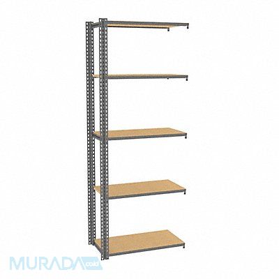Boltless Shelving Low Profile Overall Depth 18 in Overall Height 96 in Overall Width 36 in Shelf Gauge 14 ga Shelf Adjustment Increments 1 1/2 in Steel Particleboard Steel (2) Posts (5) Deck Levels Includes Decking Yes 600 lb Whole Unit Load Capacity 3 000 lb Add-On Open SCS Indoor Advantage(R) Certified Post Gauge 16 ga Number of Shelves 5 Maximum Post Load Capacity 8 000 lb with Beams Evenly Spaced at 24 in Powder Coated Light-Duty Gray