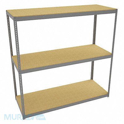 Boltless Shelving Channel Overall Depth 36 in Overall Height 96 in Overall Width 96 in Shelf Gauge 14 ga Shelf Adjustment Increments 1 1/2 in Steel Particleboard Steel (3) Deck Levels (4) Posts Includes Decking Yes 1 600 lb Whole Unit Load Capacity 4 800 lb Starter Open SCS Indoor Advantage(R) Certified Post Gauge 14 ga Number of Shelves 3 Maximum Post Load Capacity 13 000 lb with Beam Evenly Spaced at 24 in Powder Coated Heavy-Duty Gray