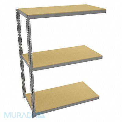 Boltless Shelving Angle Overall Depth 36 in Overall Height 96 in Overall Width 72 in Shelf Gauge 14 ga Shelf Adjustment Increments 1 1/2 in Steel Particleboard Steel (2) Posts (6) 14 ga Front to Back Deck Supports 2 per Level (6) 14 ga Front to Back Shelf Supports (6) 14 ga Left to Right Shelf Supports Includes Decking Yes 1 750 lb Whole Unit Load Capacity 5 250 lb Add-On Open SCS Indoor Advantage(R) Certified Post Gauge 16 ga Number of Shelves 3