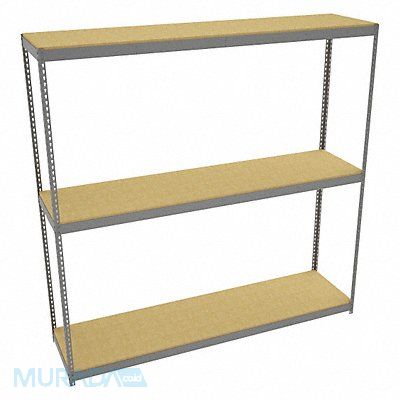 Boltless Shelving Angle Overall Depth 24 in Overall Height 96 in Overall Width 96 in Shelf Gauge 14 ga Shelf Adjustment Increments 1 1/2 in Steel Particleboard Steel (3) Deck Levels (4) Posts Includes Decking Yes 1 250 lb Whole Unit Load Capacity 3 750 lb Starter Open SCS Indoor Advantage(R) Certified Post Gauge 14 ga Number of Shelves 3 Maximum Post Load Capacity 8 000 lb with Beams Evenly Spaced at 24 in Powder Coated Heavy-Duty Gray