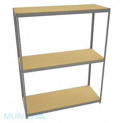 Boltless Shelving Channel Overall Depth 36 in Overall Height 120 in Overall Width 96 in Shelf Gauge 14 ga Shelf Adjustment Increments 1 1/2 in Steel Particleboard Steel (3) Deck Levels (4) Posts Includes Decking Yes 1 600 lb Whole Unit Load Capacity 4 800 lb Starter Open SCS Indoor Advantage(R) Certified Post Gauge 14 ga Number of Shelves 3 Maximum Post Load Capacity 13 000 lb with Beam Evenly Spaced at 24 in Powder Coated Heavy-Duty Gray