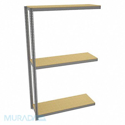 Boltless Shelving Angle Overall Depth 24 in Overall Height 120 in Overall Width 72 in Shelf Gauge 14 ga Shelf Adjustment Increments 1 1/2 in Steel Particleboard Steel (2) Posts (3) Deck Levels Includes Decking Yes 1 750 lb Whole Unit Load Capacity 5 250 lb Add-On Open SCS Indoor Advantage(R) Certified Post Gauge 16 ga Number of Shelves 3 Maximum Post Load Capacity 8 000 lb with Beams Evenly Spaced at 24 in Powder Coated Heavy-Duty Gray
